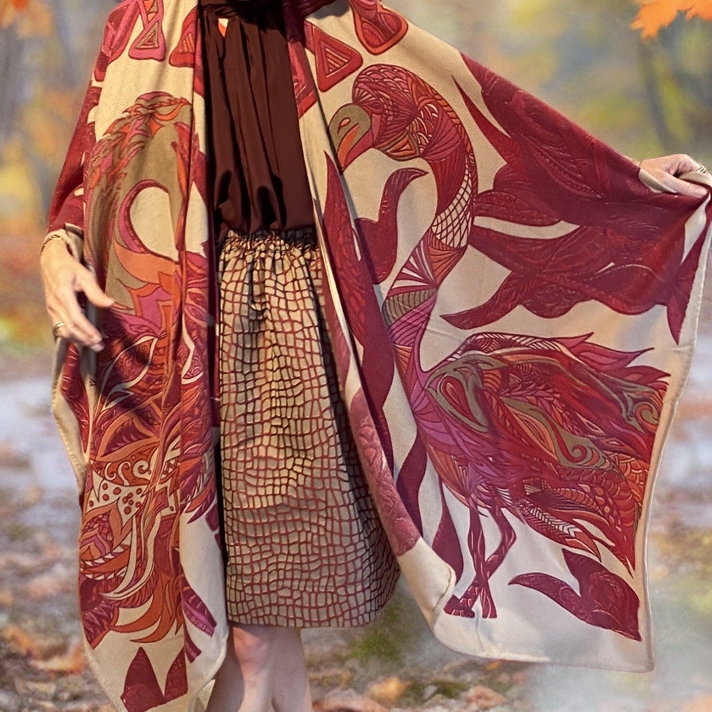 FLAMINGO GARDEN Kaschmir Cape/Stola, autumn rust & beige, limited 4/6