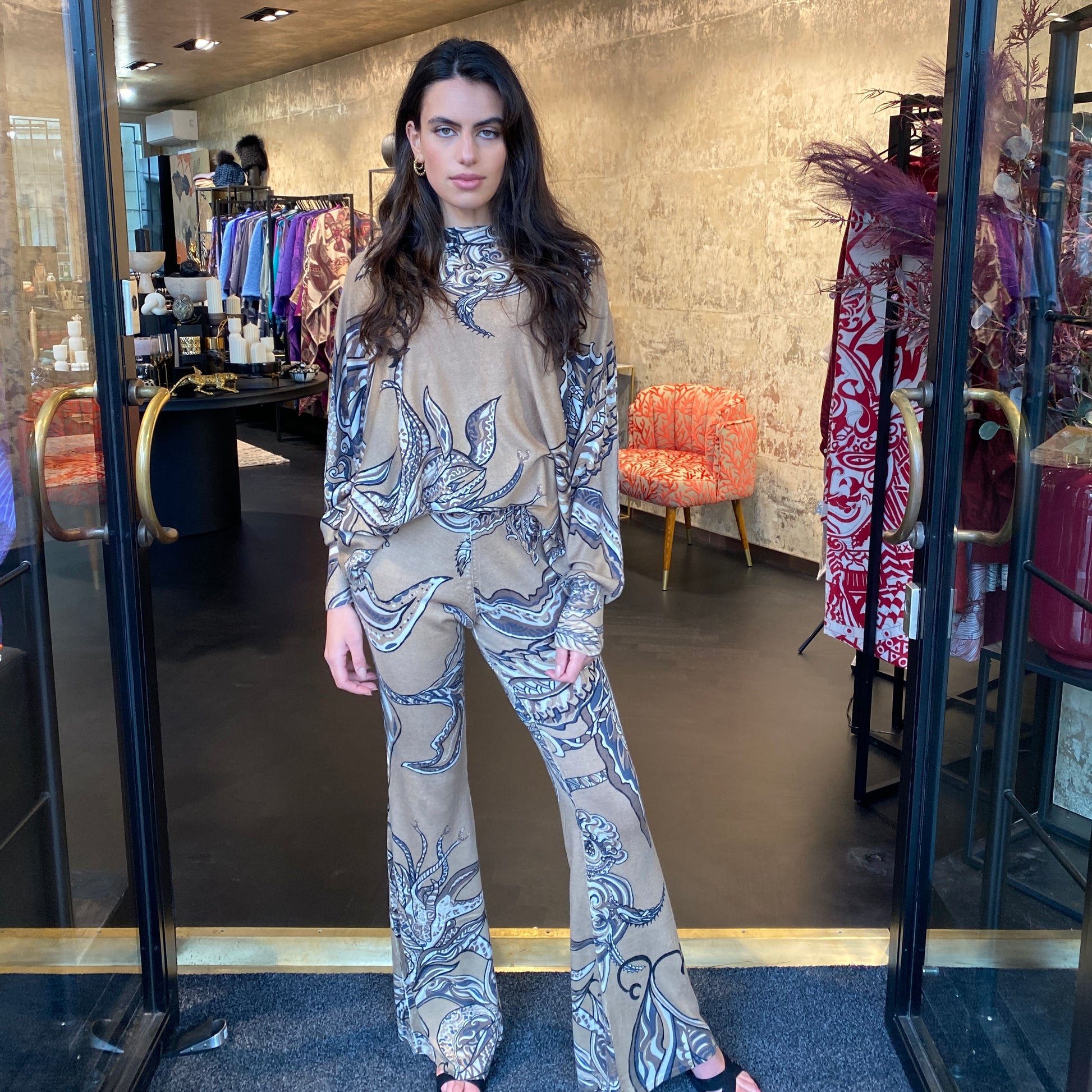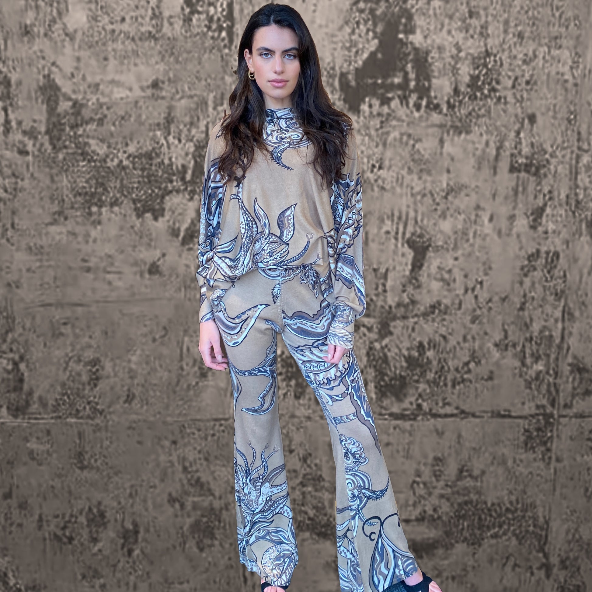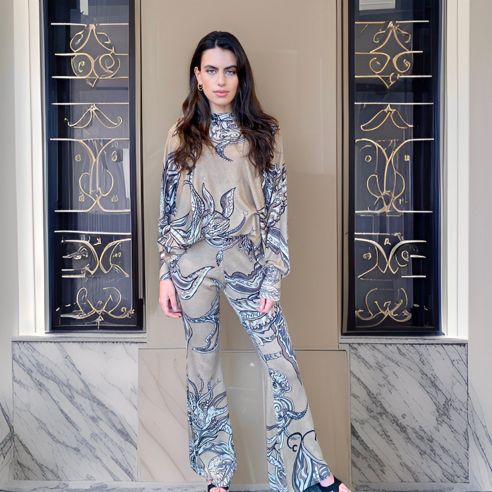 Dieser Pullover aus 100 % feinstem Baby-Kaschmir ist einzigartig und exklusiv - er ist auf nur 3 Stück limitiert. Jedes Stück wurde von Hand bedruckt, was ihm eine besonders exklusive Note verleiht und ihn zu einem echten Kunstwerk macht. Das Motiv "Soul Leaves" ist inspiriert von der Schönheit der Natur und verleiht diesem Kleidungsstück eine besondere Eleganz.
