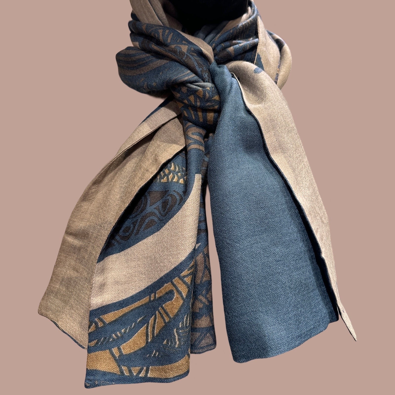“SOUL LEAVES” doubleface Schal aus 100% leichtem baby cashmere - 200x100- petrol/grau/grün - Limitiert auf 5 Stück
