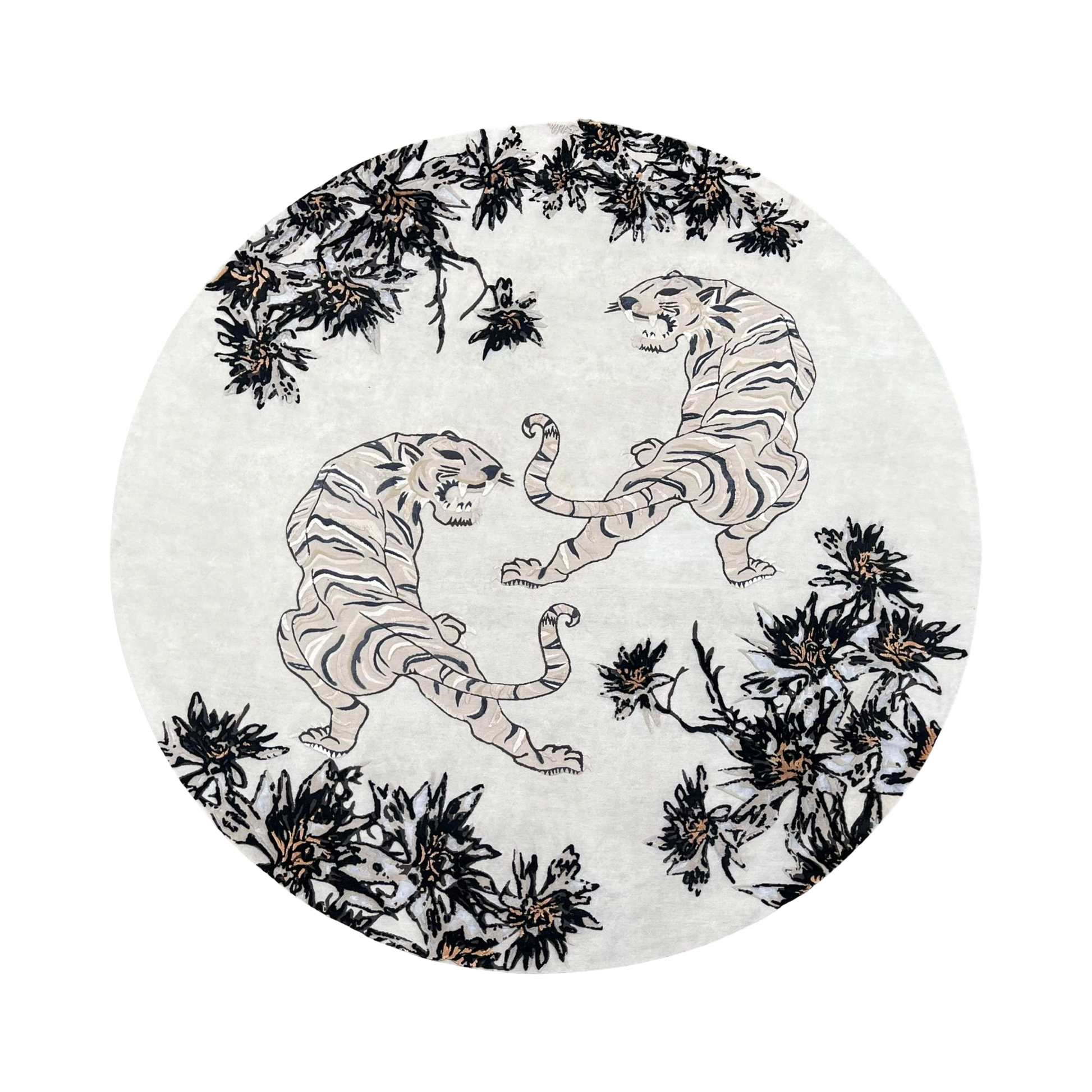 Twin Tigers - Teppich Unikat - Unique Designer Rug 230 cm - Knüpfzeit ca 150 Tage