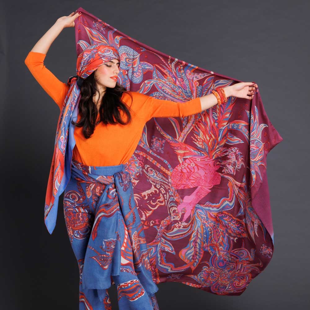 Die Farben werden aus 10 einzelnen Rahmen aufgetragen und mit aufwändigem Siebdruck verfahren bedruckt.Die limitierten Kreationen von STELLA ESVARA entstehen in liebevoller Handarbeit. Durch die Kombination von traditioneller Handwerkskunst sowie im Einklang mit einer fairen Produktion, entstehen einzigartige Kaschmir Kreationen in formvollendeter Liebe zum Detail.