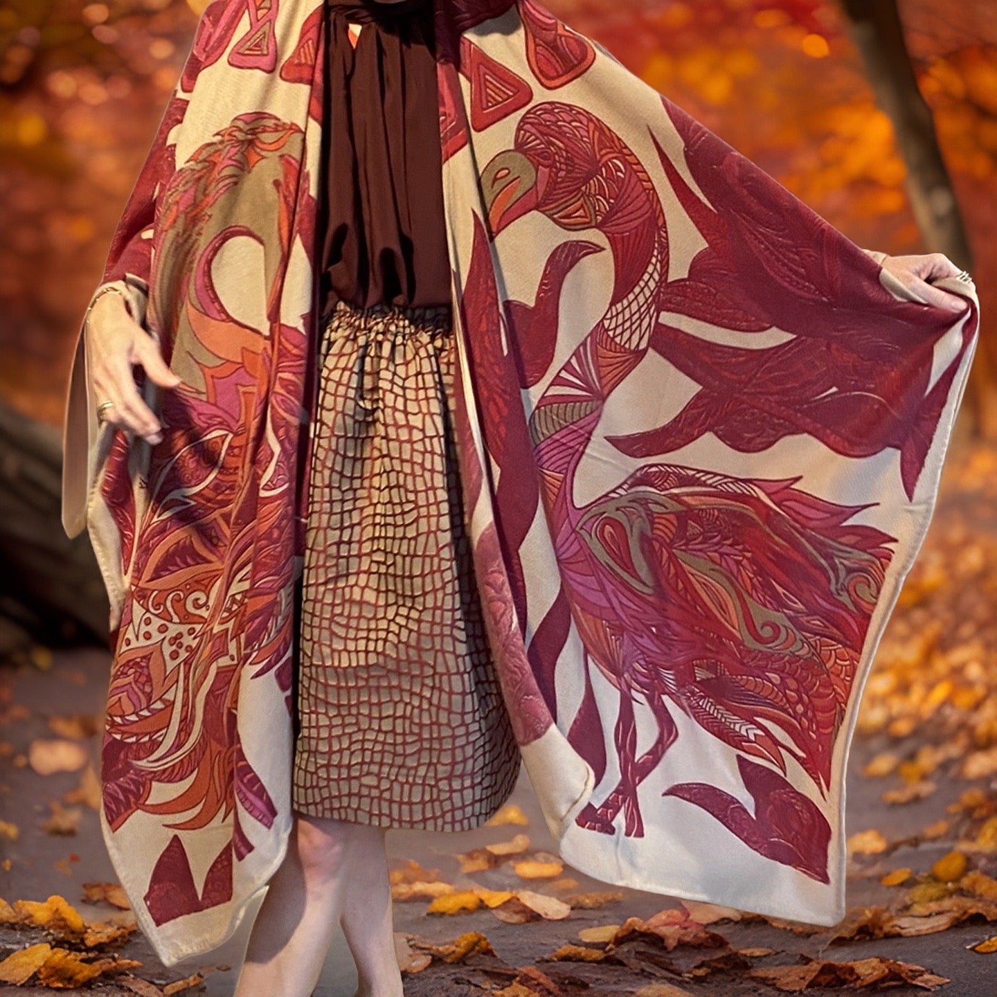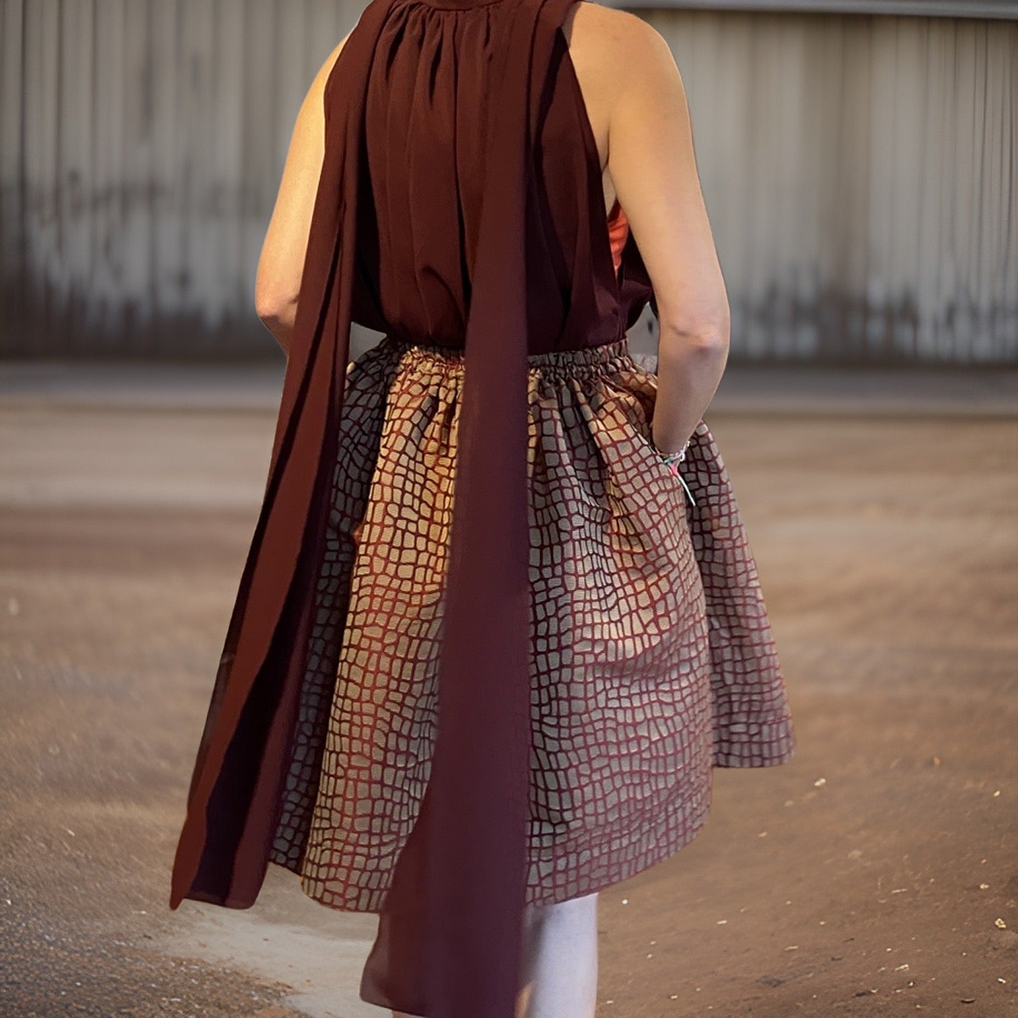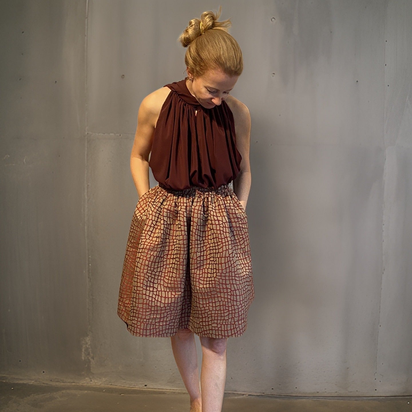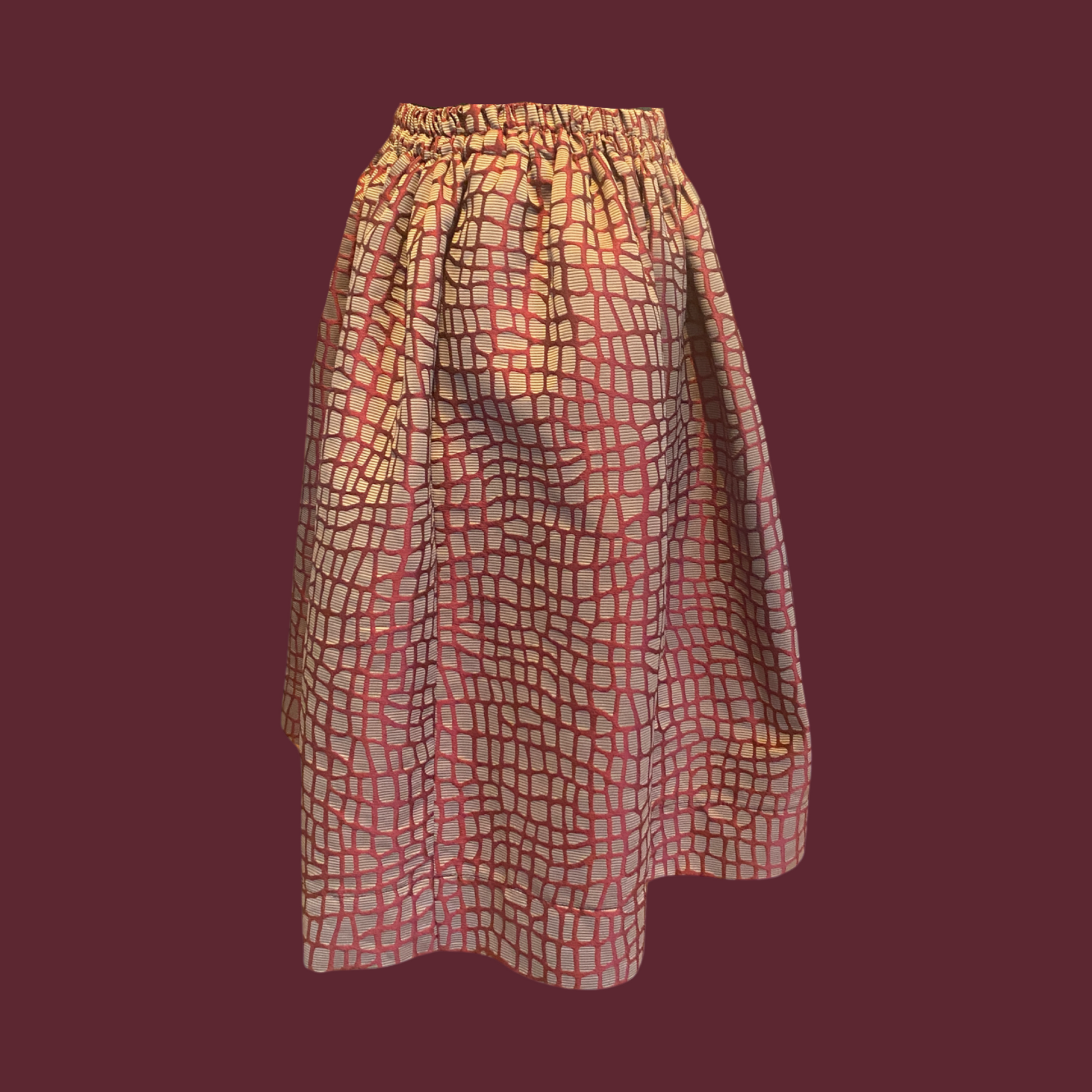 Brokat Seiden Rock - Reptile - burgundy/beige