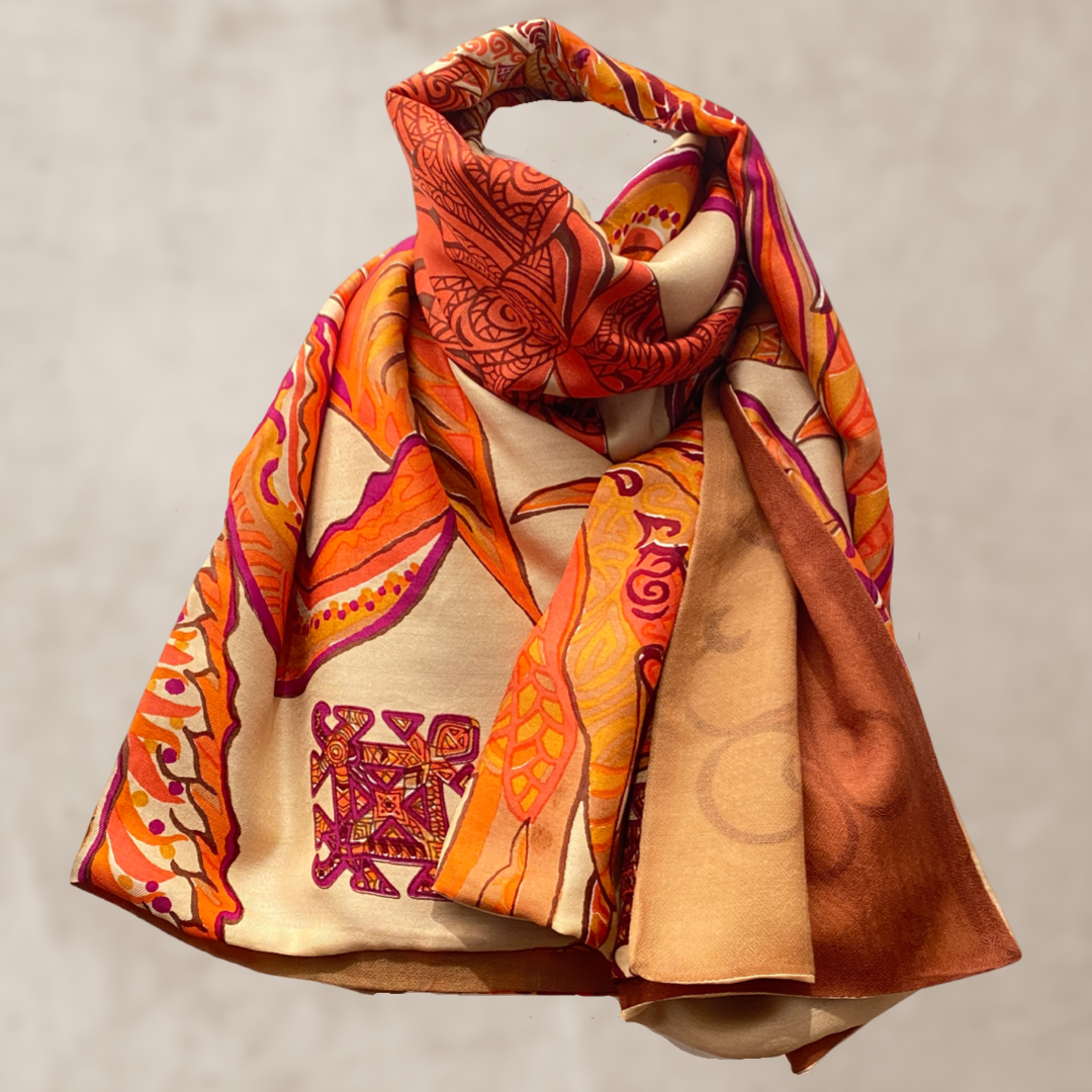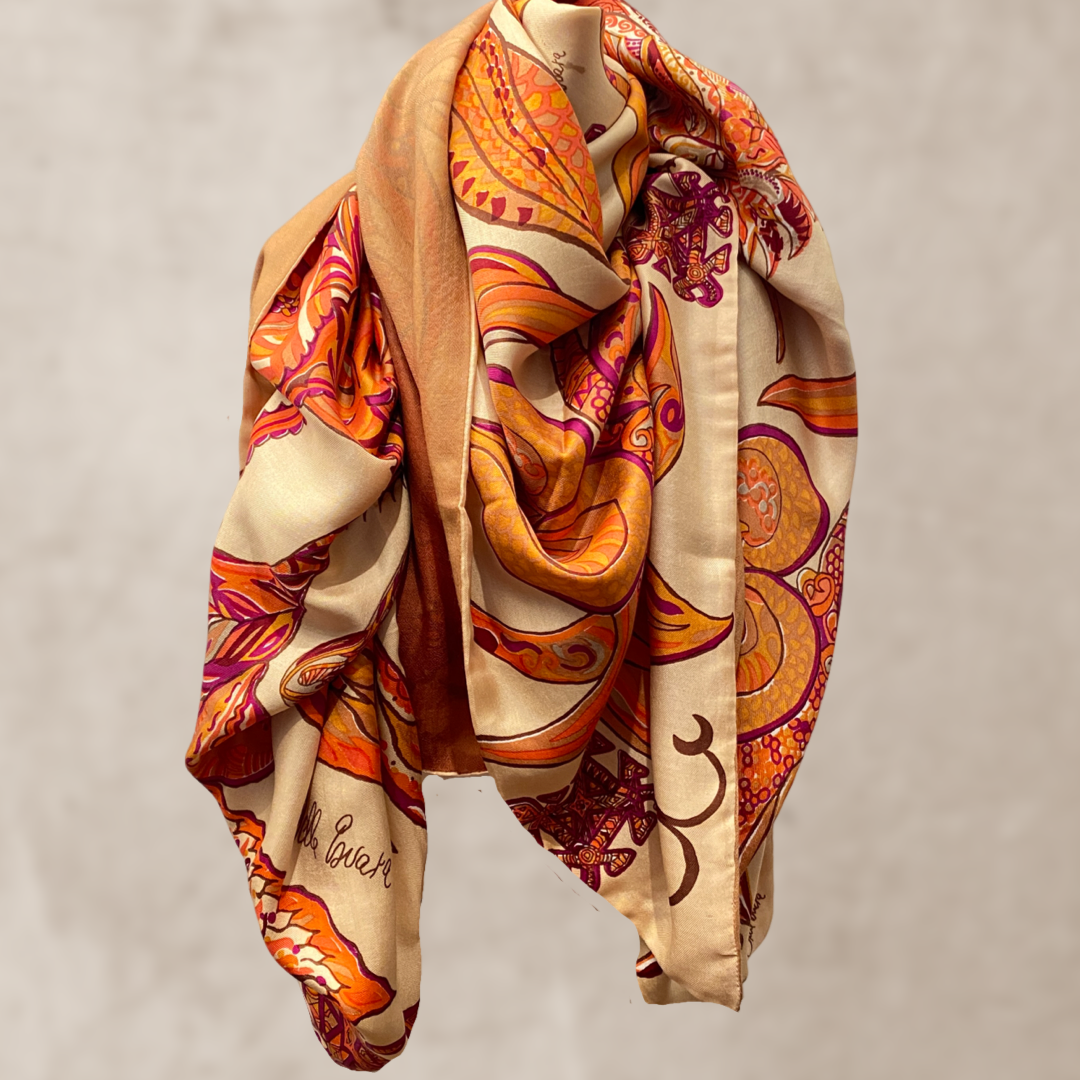 Die Farben werden aus 10 einzelnen Rahmen aufgetragen und mit aufwändigem Siebdruck verfahren bedruckt.Die limitierten Kreationen von STELLA ESVARA entstehen in liebevoller Handarbeit. Durch die Kombination von traditioneller Handwerkskunst sowie im Einklang mit einer fairen Produktion, entstehen einzigartige Kaschmir Kreationen in formvollendeter Liebe zum Detail.