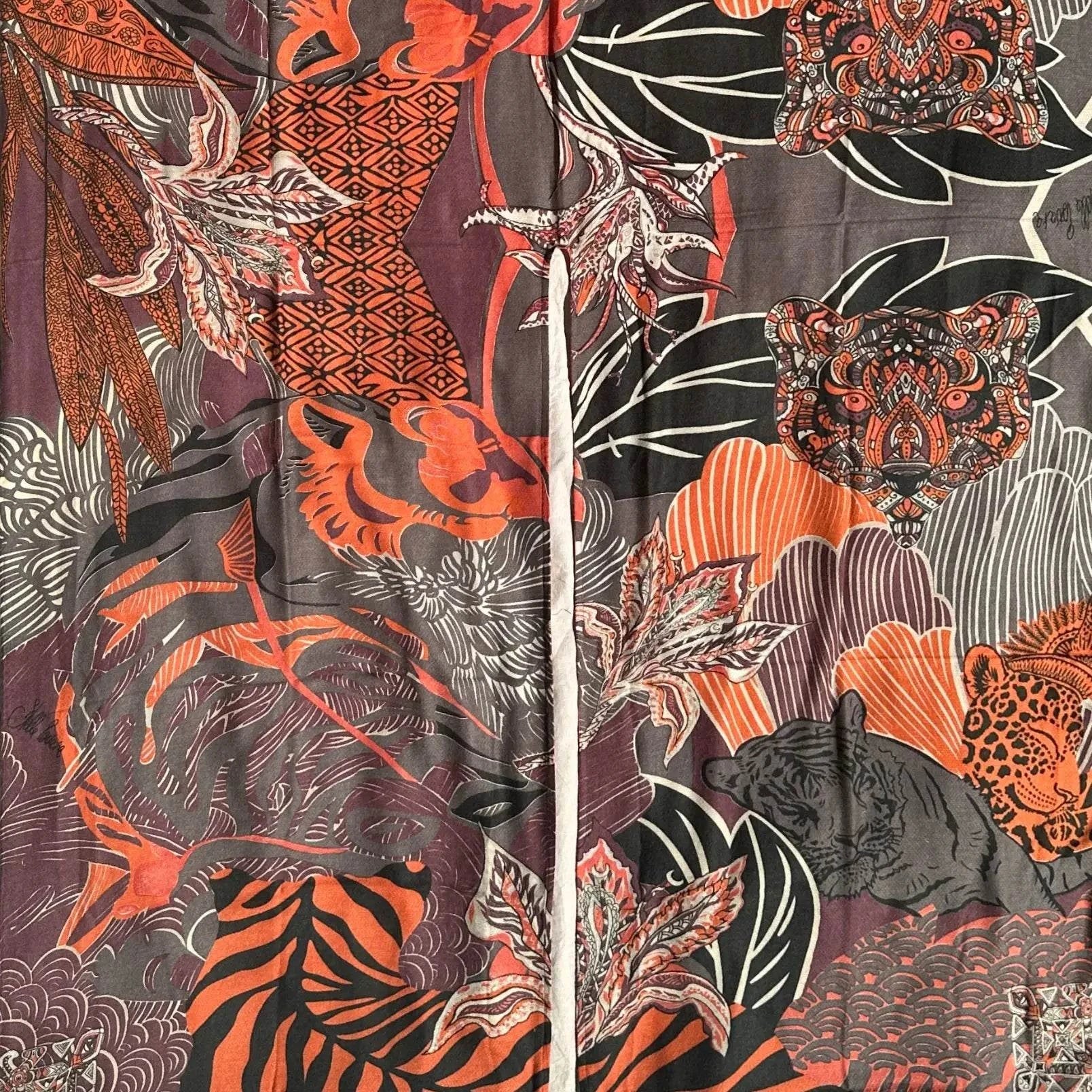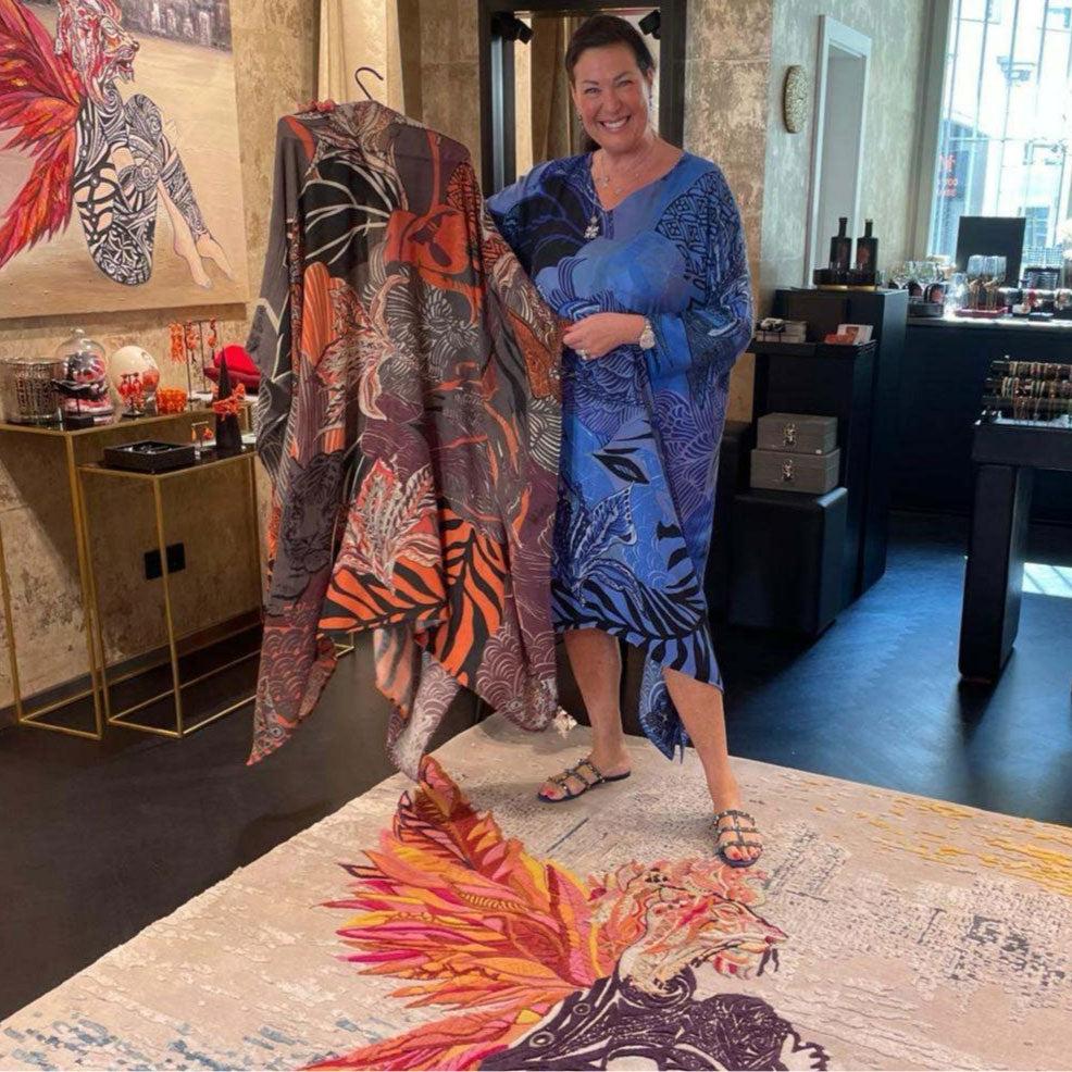 200 x 140 cm, 100 % Kaschmir, Handmade, mit Bio-Farben per Hand bedruckt, die Kanten sind hand-rolliert, Limited Edition 5 St.